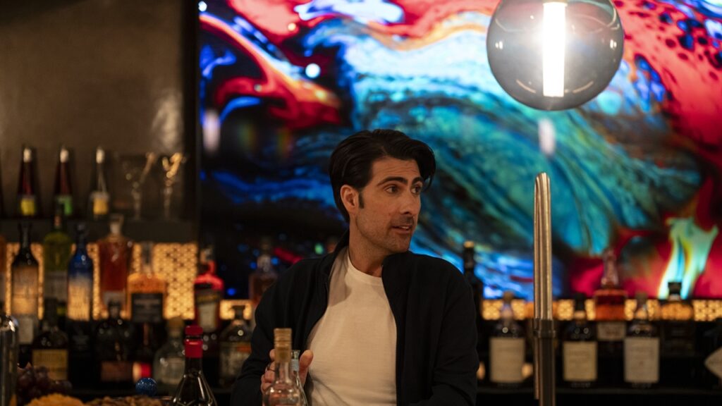 Finally, there’s Youssef, the only Brooster unconvinced that the quarter aren’t rightful rulers of the planet. In a sea of amorality and egotism, it can be easy to attach to him as the “good one.” Youssef smartly plays into that while giving glimpses of the truth. He’s just as nasty as they, just as willing to let the world burn to prove a point. The fact that his miracle software is an AI moderator is a big giveaway. He’s just another paper king who’d rather cede control to a machine than fix things himself. The final nail in the coffin is his “concerns” about his girlfriend Hester (Hadley Robinson). Like all obsessives, he hides his controlling behaviors and insecurities under a veil of “watching out for her” and does so poorly. Even Schwartzman’s Hugo has more dignity in those moments.