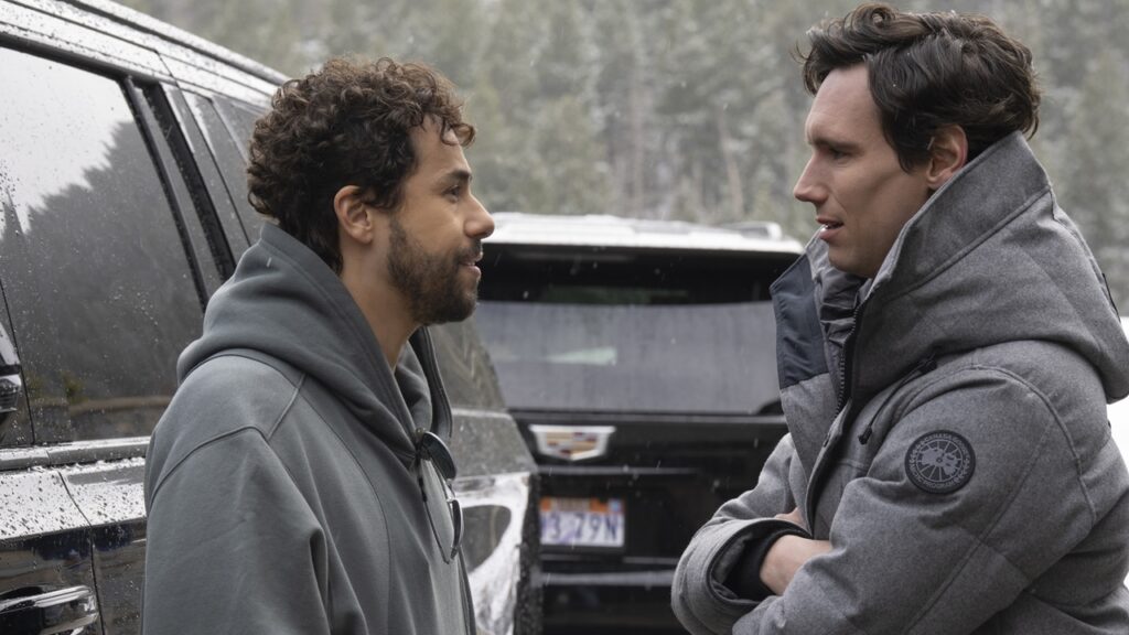 At Hugo Van Yalk’s (Jason Schwartzman) new ski lodge/ostentatious act of overcompensation, Hugo—and his staff—diligently prepare for the arrival of his friends, the “Broosters”. They’re a trio of tech billionaires and Hugo, whose worth isn’t quite a “b-nut,” as he insists on calling it. Besides Hugo, there’s Venis (Cory Michael Smith), an Elon type whose social media app is platforming fake images so real they’re stoking violence worldwide. The only way to curtail it seems to be Jeff’s (Ramy Youssef) AI, which can discern real from fake even when humans can’t. The three of them all came up under Randall (Steve Carell), a venture capitalist terrified of his own mortality who couches all his choices in philosophy and historical events he clearly doesn’t understand.