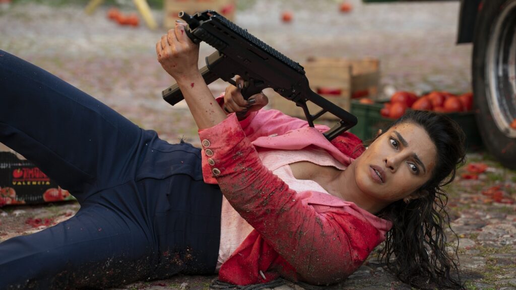 Supporting players, therefore, have plenty of room to go bigger or smaller without feeling out of step with the action. For example, Paddy Considine plays arms dealer Viktor Gradov as a fairly serious baddie. At the same time, Jack Quaid gives CIA Agent Marty Comer a heavy dose of near-manic enthusiasm. Both fit well into Heads of State’s fabric. It’s a film that can accommodate a fairly grim massacre of a team of espionage agents led by Noel Bissett (Priyanka Chopra Jonas), an estranged colleague of Clarke’s, and a scene where Elba and Cena endure faces full of sheep teats to escape detection by possibly hostile soldiers. It isn’t quite everything to all people, but it has real “get you a movie that can do both” vibes.