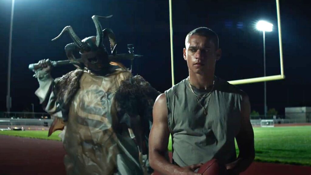 College football star Cameron Cade’s (Tyiq Withers) destiny lies in greatness. His skills on the field make an impressive argument, and everyone around him seems to agree. However, a concussion leaves him staring down the barrel of potential painfully unrealized. The initial sequences framing on-field injuries and creepy fans through horror movie imagery and music cues aren’t super inspired. Nonetheless, they suggest the film may recontextualize genre leitmotifs within the sports world’s weirdest corners.
