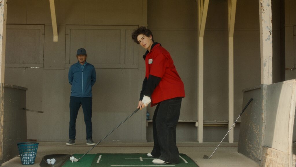 In the present day, Cahill is little more than a golf shop hustler, convincing rubes to buy the most expensive clubs so they can better believe their delusions of being some undiscovered talent. Amber-Linn, now his ex, has spent years prodding him to move out of the house they once shared so she can sell it and finally eliminate the final physical reminder of their failed commitment. At night, he and Mitt run scams on bargoers who throw down cash to see Pryce repeatedly prove he’s not the golfer he once was. It is only when Pryce accidentally witnesses high schooler Santiago “Santi” Wheeler (Peter Dager) at the driving range that he finally re-engages in life. Before long, he’s convinced Mitts, Santi, and Santi’s mom, Elena (Mariana Treviño), to hit the road in the hopes of making the teenager a golf sensation.